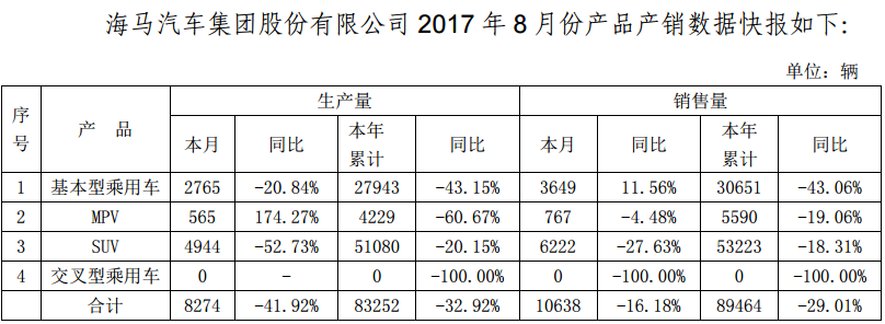 對(duì)此業(yè)績(jī)變動(dòng)原因,海馬汽車在公司公告中解釋稱,是因?yàn)楣酒囦N量下降導(dǎo)致第三季度業(yè)績(jī)面臨虧損。