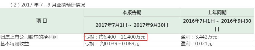 10月14日,海馬汽車發(fā)布了一則今年前三季度業(yè)績(jī)預(yù)告的公告,其中顯示,公司在2017年7-9月業(yè)績(jī)預(yù)計(jì)虧損約6400-11400萬(wàn)元。也就是說(shuō)公司較上年同期相比,公司今年第三季度凈利潤(rùn)將由盈利轉(zhuǎn)為虧損。