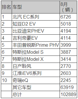 EVSalesblog公布的數據顯示北汽新能源EC系列奪得8月全球銷冠