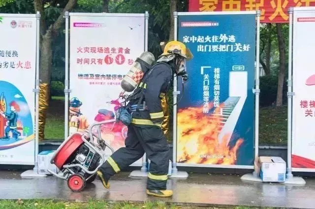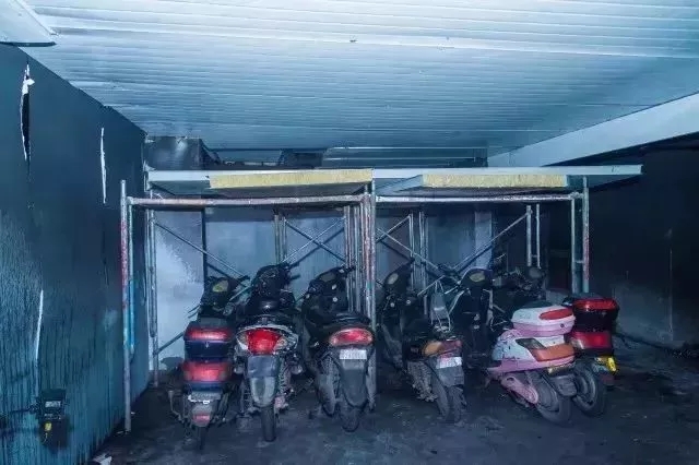 15:20分在負一層非機動車庫停放六輛測試用電動自行車,真實模擬電瓶車因電氣線路故障引發火災。負一層通往疏散樓梯間的防火門保持常閉,防火分隔完整。其余樓層防火門和窗戶全部關閉,完整展現高層建筑火災煙氣流竄的煙囪效應。